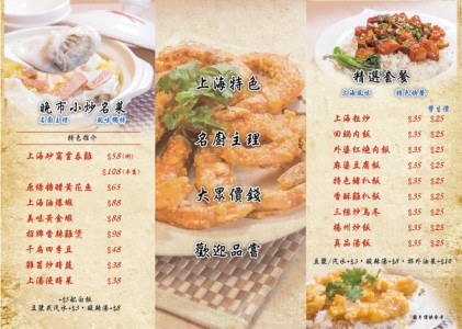 背景用了淡淡的宣紙和水墨處理,不是為了耍花樣,而是讓左側的氣氛有層次。資訊區用穩定的米色,視覺自然分區,不會混在一起。圖片亮一點、近一點,就是讓食物看起來好吃。中英文一起放,是為了照顧不同客群。字體大小一致,是基本功,不做到就算不上設計。